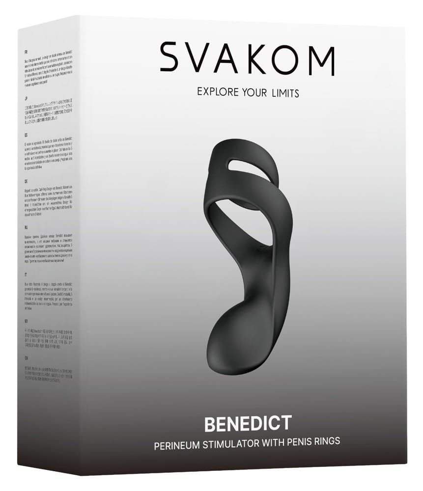 De Benedict van SVAKOM is een gecombineerde penis-testikelring met een anatomisch perfect gevormde perineumvibrator die nauwsluitend tegen de huid aanligt. Hoge rekbaarheid en soepelheid zorgen voor een optimale pasvorm en een zeer aangenaam draagcomfort. Bovendien ondersteunt de opwindend stevige pasvorm de erectie effectief voor langdurige prestaties tijdens het vrijen. Tegelijkertijd verwennen de diepe vibraties van de perineum vibrator meedogenloos het perineum tussen de anus en het scrotum voor intense climaxen!