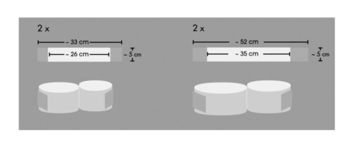 Alle riemen als dubbele band, 35 – 52 cm lang of 26 – 33 cm lang, 5 cm breed, zwart, polypropyleen.