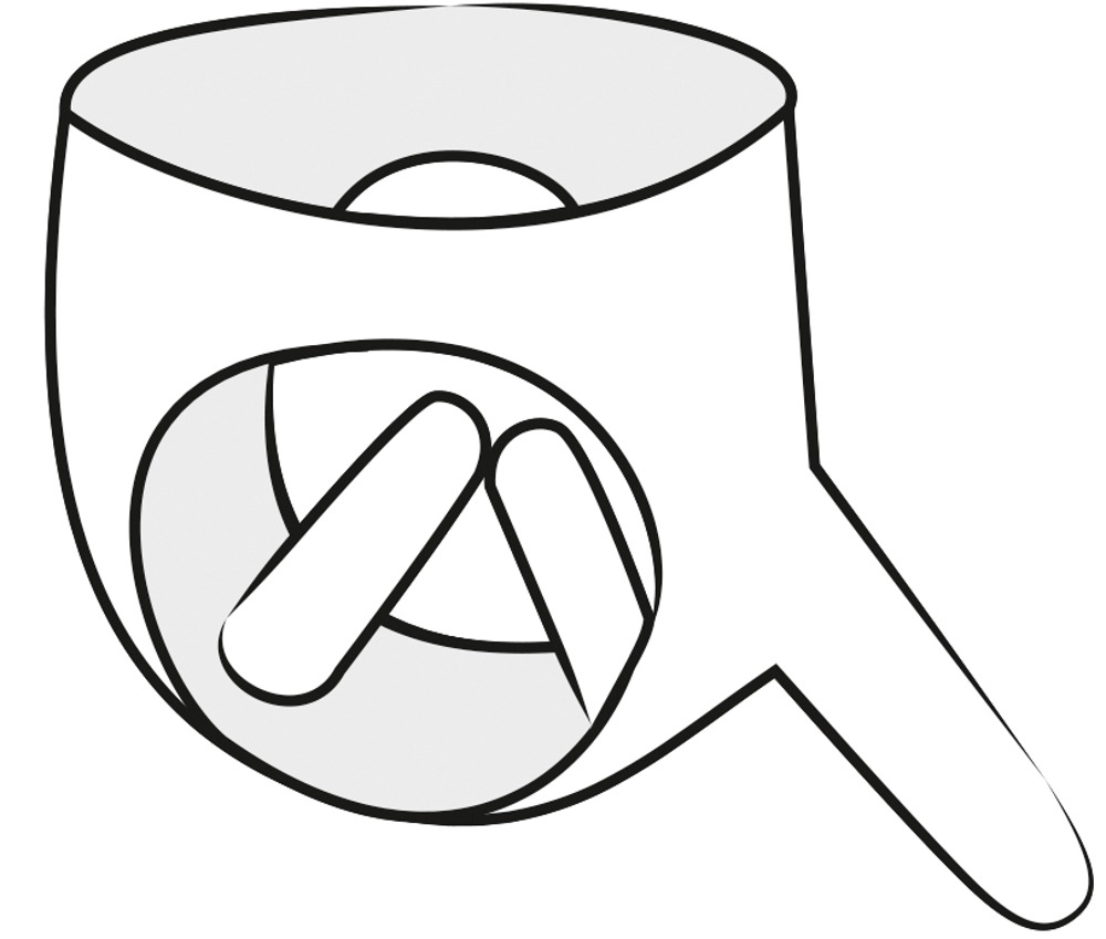 Buitenste dildo: 17 cm lang, Ø 4 cm; vaginale dildo: 13 cm lang, Ø 3,5 cm; anale dildo 11 cm lang, Ø 3 cm. Latex. Gemaakt van natuurrubber, dat allergieën kan veroorzaken.