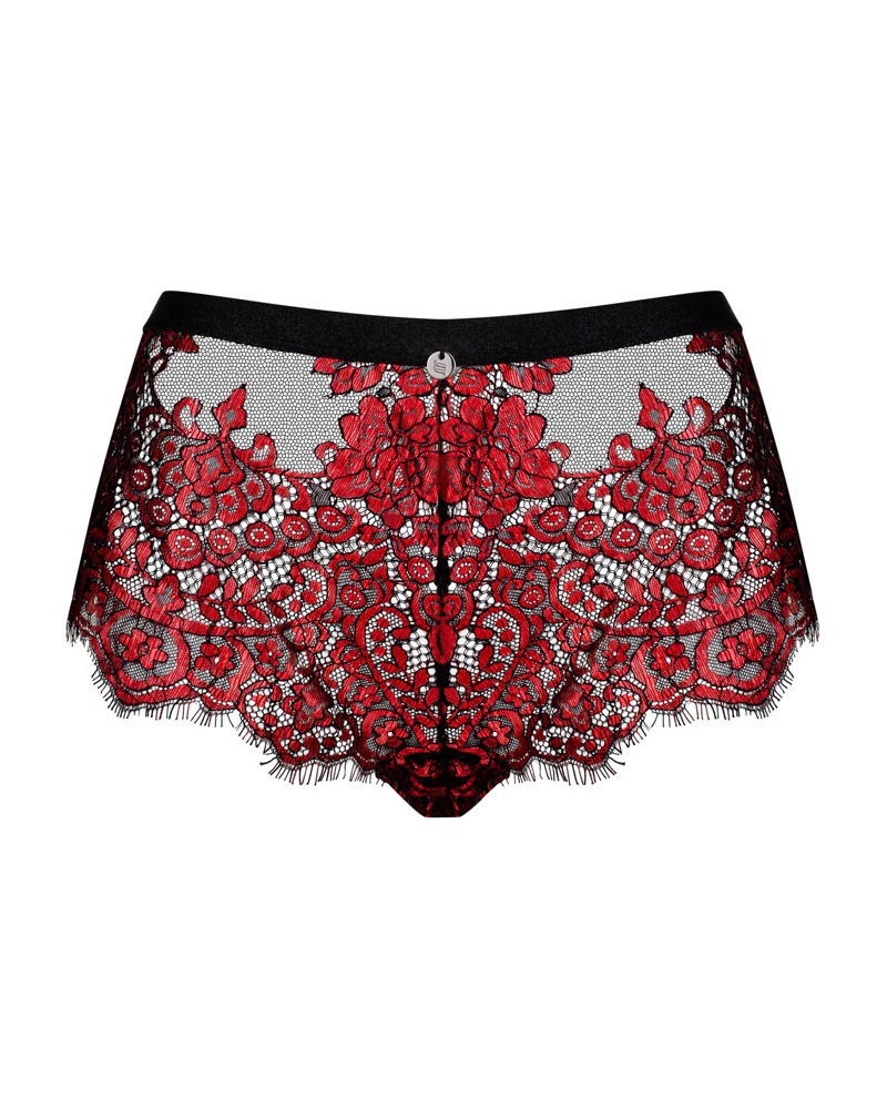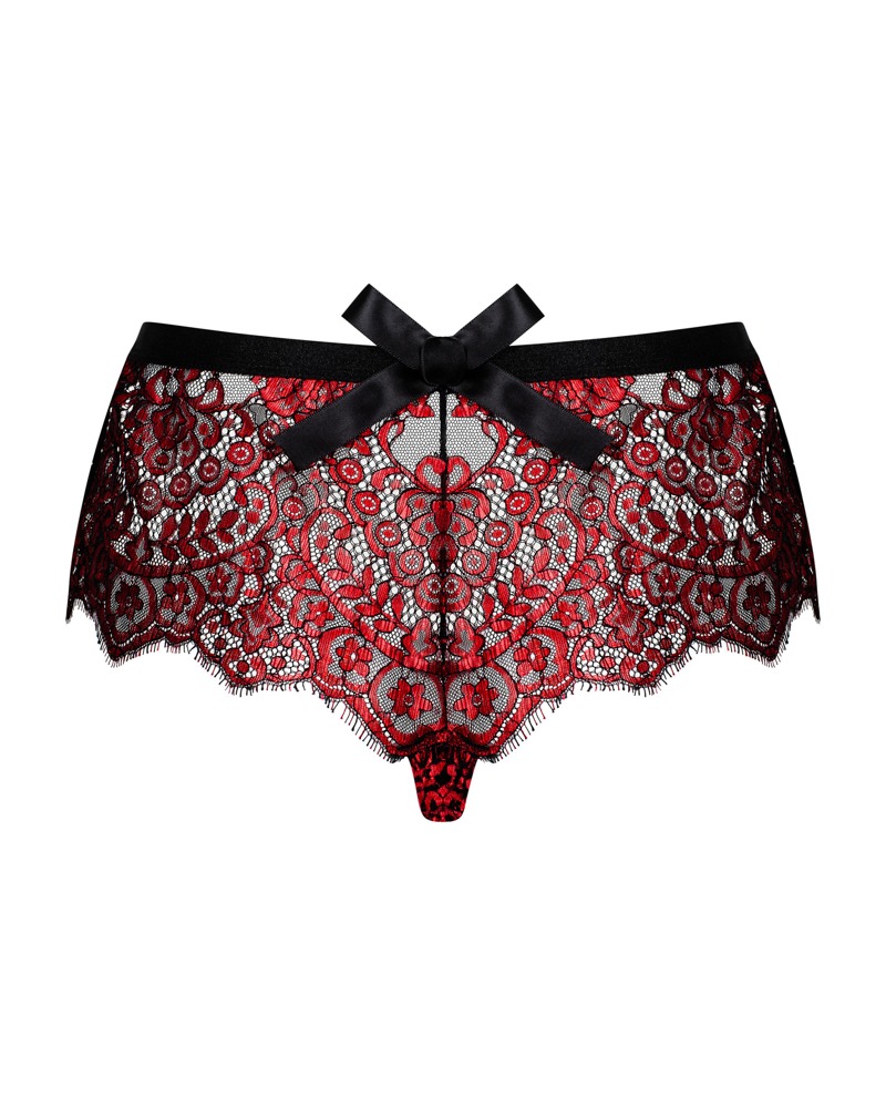 Droom je van lingerie die je vrouwelijkheid perfect benadrukt? Wij hebben iets waarmee je er heel sexy uitziet – de Redessia short. We verzekeren je dat je charmant versierde rug met strikjes en het aantrekkelijke rode kant je winteravonden zal verwarmen… en je zult hem verleiden met betoverend, doorschijnend zwart en je weelderig geaccentueerde billen.