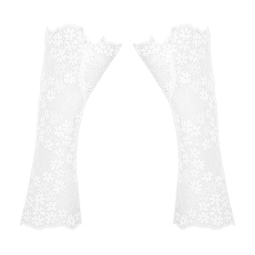 Witte Heavenlly handschoenen van Obsessive gemaakt van zacht, rekbaar bloemenkant. De korte armwarmers zijn gemaakt met alleen duimen. Het speciale extraatje voor vele outfits!