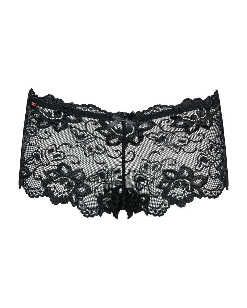 De zwarte Idillia slip van Obsessive is volledig gemaakt van delicaat bloemenkant. Overal zacht en elastisch voor een hoog draagcomfort. Versierd met satijnen strikjes in de tailleband aan de voorkant.