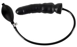 Opblaasbare dildo gemaakt van zwart latex. Ca. 20 cm lang, Ø 3,5-9,8 cm, buislengte ca. 39 cm. Met handpomp en ontluchtingsventiel. Materiaal: 100% latex, gemaakt van natuurlijk rubberlatex, dat allergieën kan veroorzaken.