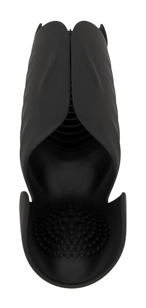 Handige masturbator Penis Trainer met 3 Punt Stimulatie van Rebel met flexibele vleugels die de penisschacht stevig omsluiten en de eikel en testikels zachtjes omsluiten in flexibele segmenten. Dit betekent dat de masturbator ook kan worden gebruikt bij erectiestoornissen. Het eikelsegment wordt gemasseerd door zachte nopjes, het middensegment door geprononceerde stimulatiegroeven en het testikelsegment door stevigere nopjes. Op deze manier worden de penis en de testikels rondom verwend en tegelijkertijd effectief getraind voor meer uithoudingsvermogen en kracht!