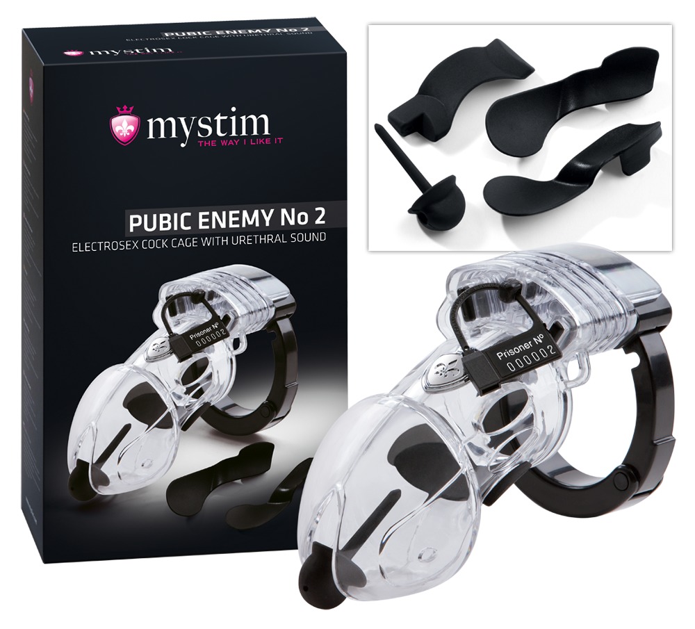 Transparante, stevige peniskooi met klem, bevestigingsschijf, drie afstandhouders, metalen slot met twee sleutels, 1 verwijderbare dilator, elektrodekabel, vijf plastic verzegelingen en tien bezitslabels. Materiaal: siliconen, PC, ABS. Accessoires voor de stimulatiestroomapparaten Tension Lover (05289270000) en Pure Vibes (05297610000). Alles verpakt in een zwart hardcover koffertje.