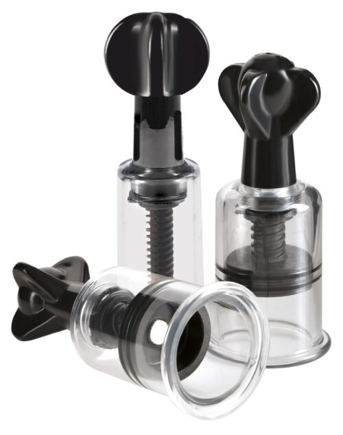 Voor de zeer gevoelige tepels: tepelspenen met extra hoge zuigkracht dankzij het draaimechanisme. Hetzelfde gebeurt op de clitoris en is zeker nog spannender.