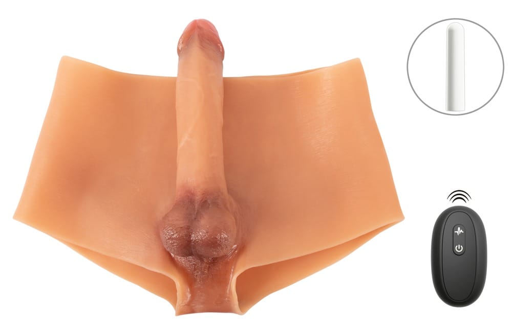 Ultra Realistische Vibrerende Penis Broek van You2Toys met een absoluut realistische voorgevormde vibrerende penis en testikels. De bilplooi en rekbare anusopening maken de levensechte, realistische look compleet. Inclusief vibrator met afstandsbediening (bereik 8 meter) voor 10 vibratiestanden. De vibrator kan met zijn stevig voorgevormde eikel uit de penishuls worden gehaald. Hierdoor kan de broek ook zonder vibrator als penisverlenging gedragen worden.
