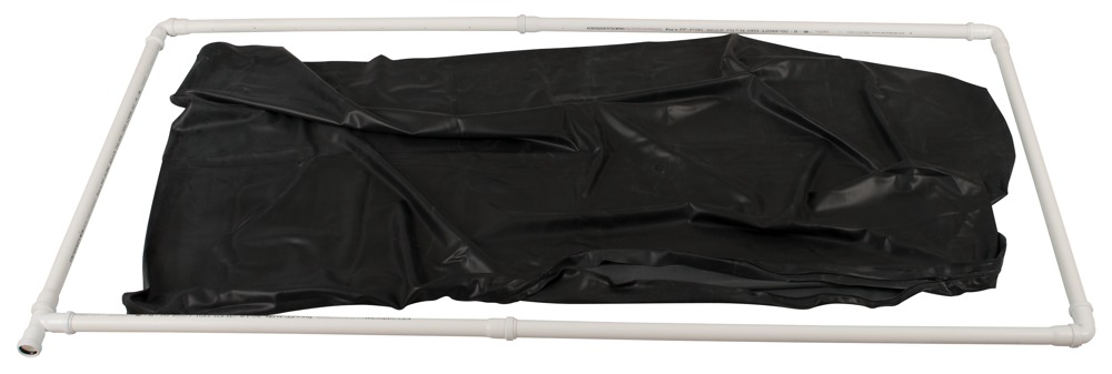 Zwart latex vacuümbed van LateX in de maat 2 x 1 meter. Met een lange rits aan de zijkant voor gemakkelijke toegang. De set bestaat uit een stevig kunststof frame bestaande uit 4 buizen (83 cm elk), 2 buizen (103 cm elk), 3 korte schuine buizen en een korte T-buis voor het creëren van een vacuüm met behulp van een standaard stofzuiger (bediening vereist tijdens gebruik). Het slimme insteeksysteem maakt een snelle en eenvoudige montage mogelijk, terwijl de stevige verlijming van de latex zorgt voor extra stabiliteit en perfecte dichtheid.